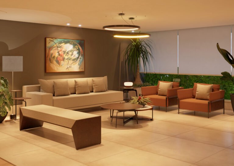 • Lobby com design elegante e acolhedor para receber com sofisticação