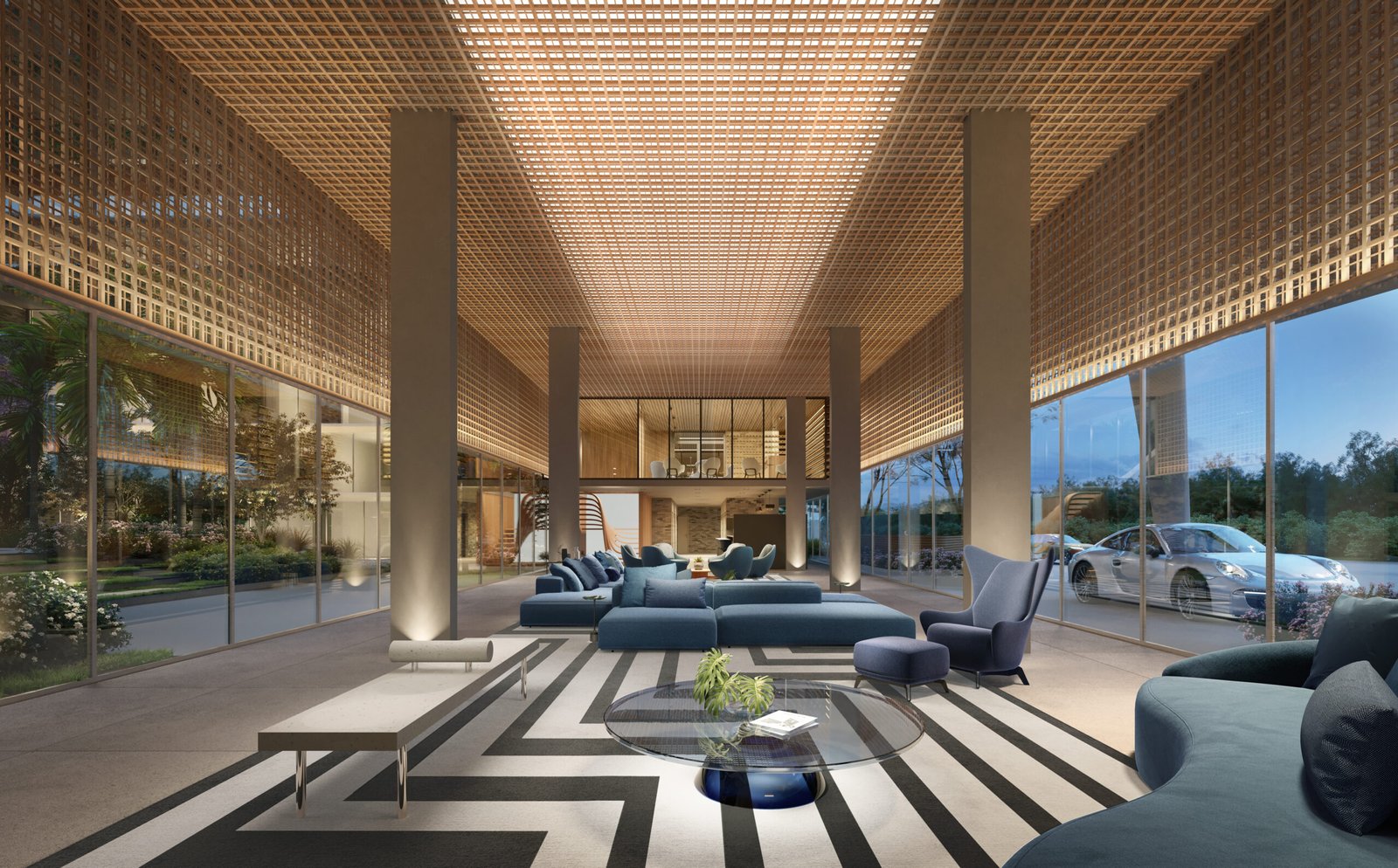 Lobby imponente com design contemporâneo